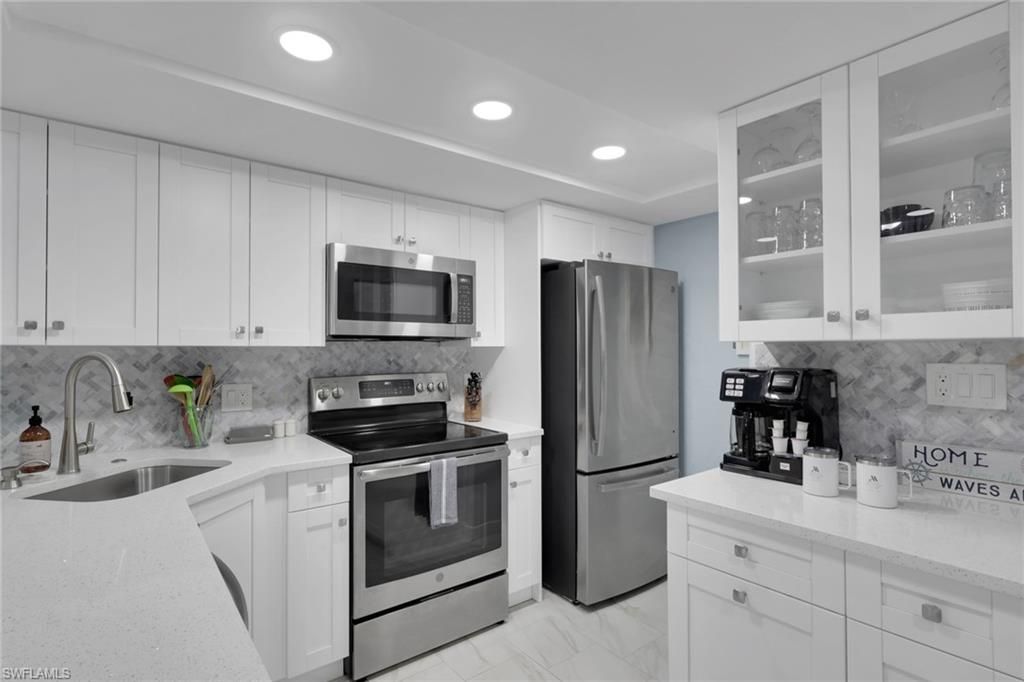 Welcome to your dream getaway at Park Shore Resort in Naples, Florida! This beautifully renovated 2-bedroom, 2-bath condo is a true gem, offering both comfort and style with incredible rental income potential. Ideally situated on the third floor with elevator access, this unit is located on the front side of the resort, providing easy access to all amenities and stunning views. Step inside to discover a thoughtfully reconfigured layout designed for modern living and ultimate r...Welcome to your dream getaway at Park Shore Resort in Naples, Florida! This beautifully renovated 2-bedroom, 2-bath condo is a true gem, offering both comfort and style with incredible rental income potential. Ideally situated on the third floor with elevator access, this unit is located on the front side of the resort, providing easy access to all amenities and stunning views. Step inside to discover a thoughtfully reconfigured layout designed for modern living and ultimate relaxation. The guest bedroom is conveniently placed at the front, while the master suite opens directly onto a private lanai overlooking the lush resort grounds—a perfect retreat for those tranquil Florida mornings. The open closet design and new walk-in shower in the master bath add a contemporary touch, while the entire unit is enhanced by newly installed, durable vinyl flooring. The heart of the home is the sleek, updated kitchen, featuring soft-closing cabinets, sparkling white countertops, and a stylish stoneledge accent on the peninsula. A separate coffee station rounds out this space, making it as functional as it is inviting. Entertain in the open-concept layout or enjoy quiet evenings in the bright, Naples beach-style decor that gives this condo its coastal charm. No detail has been overlooked in the renovation, with new impact windows and sliding glass doors ensuring peace of mind, while updated ceiling fans, a water heater, and updated electrical panel provide added convenience. Every feature has been curated to create a welcoming, move-in-ready space. Beyond its stunning interior, this condo offers an incredible investment opportunity. With Park Shore Resort’s prime location and popularity, and the resort features on-site restaurant, heated pool, tennis/pickleball courts, fitness center and BBQ deck. The unit has its booking potential through popular booking websites with Homes and Villas by Marriott Bonvoy as well. You can enjoy a steady stream of rental income when you’re not savoring the property yourself. Whether you’re seeking a serene coastal retreat or a smart addition to your investment portfolio, this turnkey condo has it all. Don’t let this slice of Naples paradise slip away—schedule your showing today!